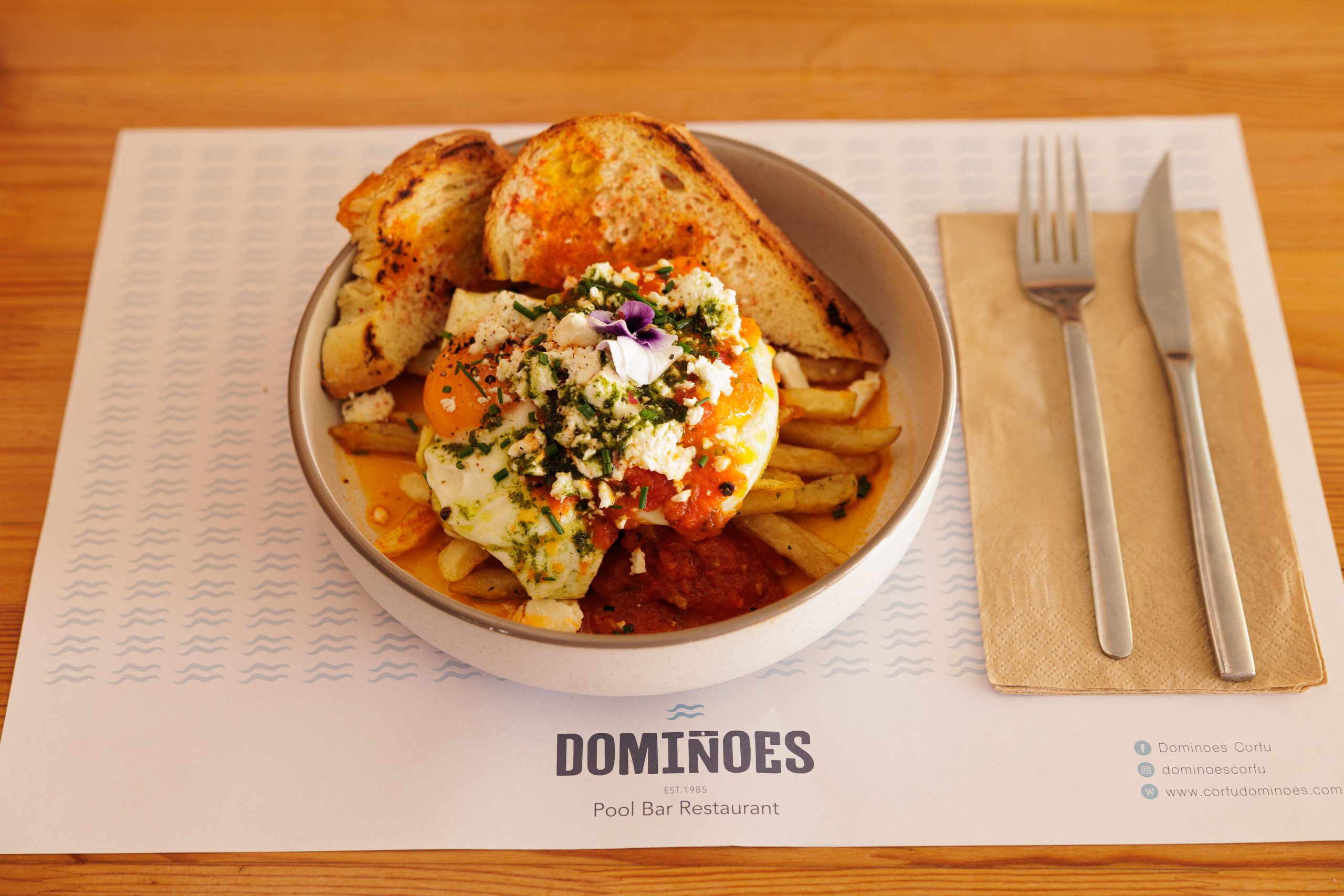 Many of the ingredients used at Dominoes are our own produce such as olive-oil, herbs, vegetables and kumquat jam. Emphasis is given to produce bought from local farmers. All the other products we use are supplied by local businesses. Our traditional dishes are prepared with care, the way our grandmothers cooked. Our most popular, unchanging favourite has always been Corfiot dish “Pastitsada”.